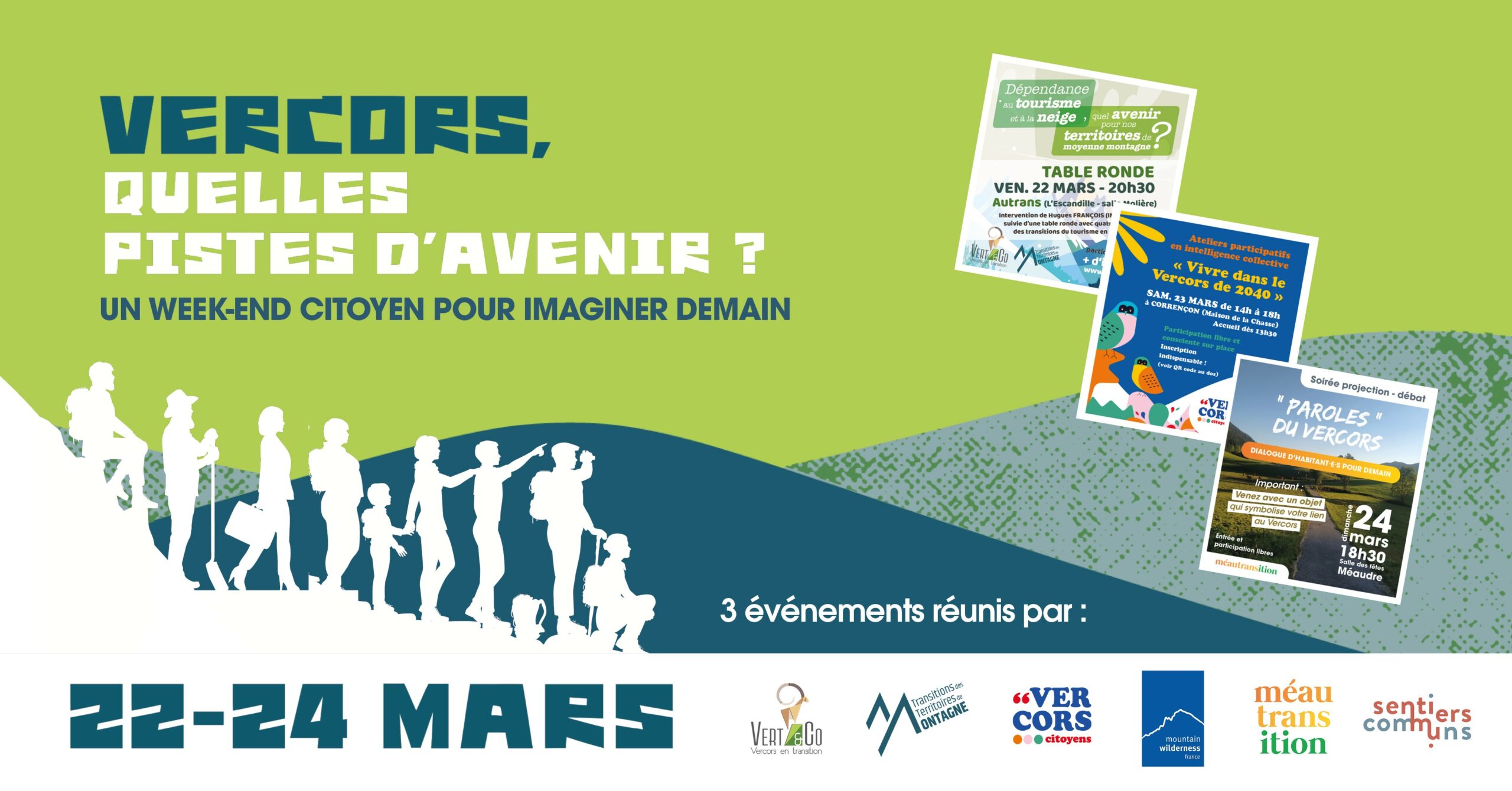 Organisé conjointement par les associations et collectifs Vert&Co, Meautransition, Sentiers Communs, Vercors Citoyens, soutenues par Mountain Wilderness et 2TM , ce week-end participative à pour thème ‘’VERCORS : QUELLES PISTES D’AVENIR ? Un week-end citoyen pour imaginer demain.’’